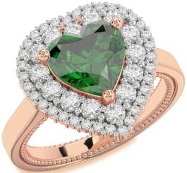 Diamond Emerald Rose Gold Silver Heart Halo Engagement Ring