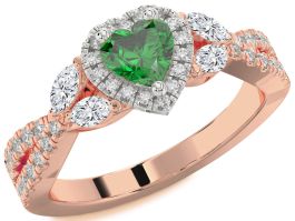 Diamond Emerald Rose Gold Silver Heart Halo Engagement Ring