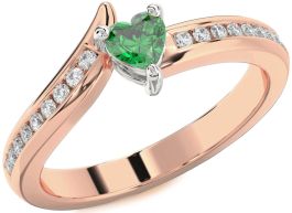 Diamond Emerald Rose Gold Silver Heart Pave Promise Ring