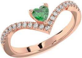 Diamond Emerald Rose Gold Silver Heart Pave Promise Ring