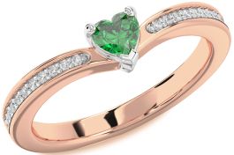 Diamond Emerald Rose Gold Silver Heart Pave Promise Ring