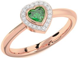 Diamond Emerald Rose Gold Silver Heart Promise Ring