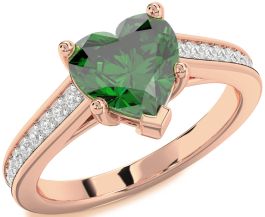 Diamond Emerald Rose Gold Silver Heart Solitaire Pave Engagement Ring