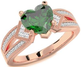 Diamond Emerald Rose Gold Silver Heart Vintage Engagement Ring