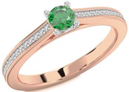 Diamond Emerald Rose Gold Silver Round Pave Promise Ring