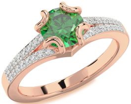 Diamond Emerald Rose Gold Silver Round Solitaire Pave Engagement Ring