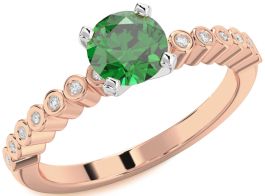 Diamond Emerald Rose Gold Silver Round Solitaire Engagement Ring