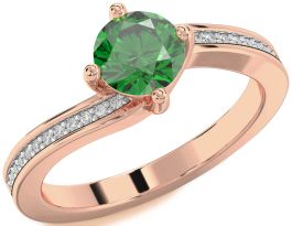 Diamond Emerald Rose Gold Silver Round Solitaire Pave Engagement Ring