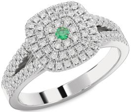 Diamond Emerald Silver Halo Round Pave Promise Ring