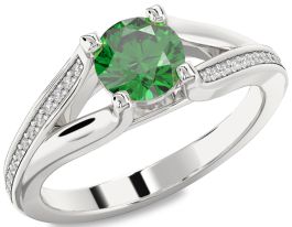 Diamond Emerald Silver Round Solitaire Engagement Ring
