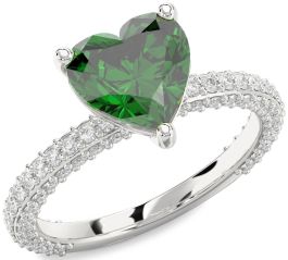 Diamond Emerald White Gold Heart Solitaire Pave Engagement Ring