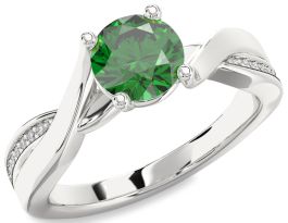 Diamond Emerald White Gold Round Solitaire Engagement Ring