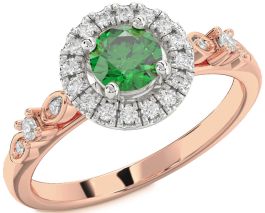Diamond Emerald White Rose Gold Halo Round Engagement Ring