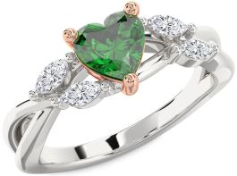 Diamond Emerald White Rose Gold Heart Engagement Ring