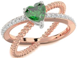 Diamond Emerald White Rose Gold Heart Solitaire Pave Engagement Ring
