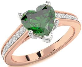 Diamond Emerald White Rose Gold Heart Solitaire Pave Engagement Ring