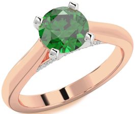 Diamond Emerald White Rose Gold Round Solitaire Engagement Ring