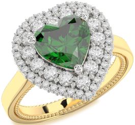 Diamond Emerald White Yellow Gold Heart Halo Engagement Ring