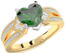 Diamond Emerald White Yellow Gold Heart Vintage Engagement Ring