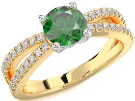 Diamond Emerald White Yellow Gold Round Solitaire Pave Engagement Ring