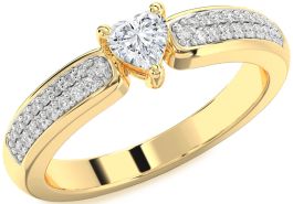This stunning Promise ring showcases a heart-shaped diamond at its center, held by four prongs that allow maximum brilliance. The wide yellow gold band is adorned with two rows of pavé-set round diamonds on each side, creating a luxurious, eye-catching sparkle. The romantic heart motif and shimmering accents make this ring a timeless expression of elegance and love.