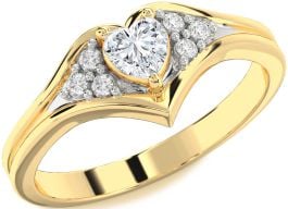 This Promise Ring features a single heart-shaped stone at its center, framed by delicate clusters on each side that add sparkle and dimension. The contoured band forms a soft chevron beneath the centerpiece, enhancing its romantic elegance. A graceful expression of commitment and care, this ring captures the beauty of love in its purest, most heartfelt form.