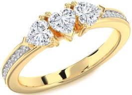 Diamond Gold Heart Three Stone Pave Ring