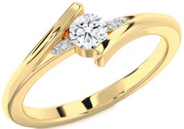This stunning Promise ring features a modern asymmetrical design in yellow gold, centered with a brilliant round-cut diamond in a sleek bezel setting. Accented by delicate pavé-set diamonds on each shoulder, the band gently curves to embrace the centerpiece. Crafted for lasting impressions, this ring is a graceful symbol of love, commitment, and enduring promise.