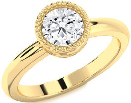 Sleek and sophisticated, this Engagement Ring features a luminous center framed in a bold bezel and bordered with vintage-inspired milgrain detailing. The clean lines of the polished band bring focus to the striking silhouette, offering a perfect blend of tradition and modernity. A powerful symbol of commitment, this design celebrates love with poise, precision, and timeless beauty.