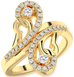 This exquisite promise ring dazzles with graceful curves and intertwining ribbons of polished yellow gold, symbolizing two lives beautifully entwined. Accented with white diamonds and highlighted by a sparkling yellow gemstone, the design evokes timeless romance and joy. A meaningful and elegant promise ring perfect for commemorating your love story.
