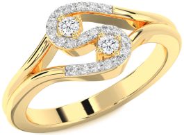 This graceful promise ring showcases two round-cut stones—one sky blue and one pink—each set at the heart of a shimmering S-shaped curve. Paved with glittering white accents and crafted in gleaming yellow gold, the fluid silhouette represents unity and enduring affection. A symbolic promise ring perfect for celebrating love, connection, and the journey ahead together.