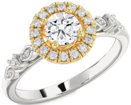Diamond Gold Silver Halo Round Engagement Ring