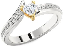 This graceful promise ring features a heart-shaped center stone nestled in a sleek, modern bypass setting. The split shank design is accented with a row of pavé-set diamonds that add a radiant touch of sparkle. With its elegant curves and classic craftsmanship, this ring beautifully captures the essence of love and commitment, making it a meaningful symbol of a lasting promise.