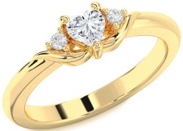 Diamond Gold Silver Heart Three Stone Engagement Ring