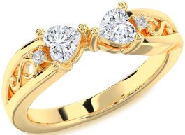 This graceful Promise Ring showcases two heart-shaped gemstones nestled side by side, representing love and connection. The polished gold band features delicate scrollwork detailing, adding an elegant, vintage touch. Accented by two sparkling round stones, it radiates charm and sophistication. A timeless symbol of devotion and togetherness, perfect for marking a special bond or heartfelt occasion.