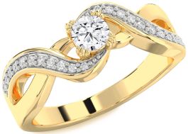 This captivating Promise ring showcases a dazzling round-cut center diamond set in rich yellow gold. Its elegant band features an intertwined twist design adorned with pavé-set accent diamonds, symbolizing the enduring bond of love and unity. Gracefully crafted to blend sophistication and sentiment, this Promise ring makes a heartfelt statement of commitment and timeless beauty.