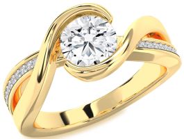 A luminous round center stone is cradled by an elegant swirl of polished curves, evoking movement, grace, and everlasting connection. The band flows around the centerpiece with sculptural beauty, accented by delicate side stones that add a soft shimmer. This Engagement Ring is a modern expression of timeless devotion, capturing the harmony of two paths becoming one radiant journey of love.
