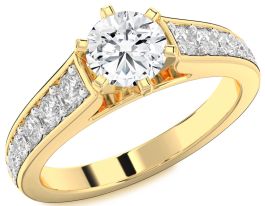 Diamond Gold Silver Round Solitaire Engagement Ring