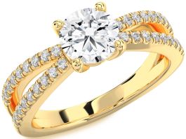 A radiant round center stone takes the spotlight, elevated by a gracefully split band adorned with twin rows of shimmering accents. The open design adds depth and movement, offering a contemporary touch to a classic silhouette. This Engagement Ring beautifully captures the harmony of light, space, and love—an exquisite symbol of a bond that shines with both brilliance and grace.