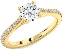 Diamond Gold Silver Round Solitaire Pave Engagement Ring