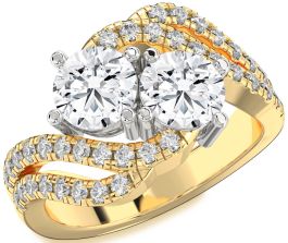 This stunning promise ring is crafted in radiant yellow gold and showcases two brilliant round center stones—one white and one pink—set side by side to symbolize unity and love. Sparkling diamond accents cascade along the gracefully split shank, enhancing the ring’s luxurious feel. A perfect promise ring to express your deep bond and everlasting commitment with elegance and charm.