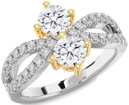 Diamond Gold Silver Round Two Stone Ring