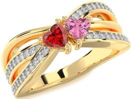 This exquisite promise ring showcases two heart-shaped stones positioned side by side, beautifully symbolizing the union of two souls. The polished gold band is adorned with rows of dazzling pavé-set accents that sweep gracefully around the centerpiece, adding depth and radiance. A timeless expression of commitment, this ring captures the essence of everlasting love.