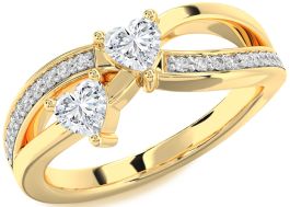 This elegant promise ring showcases two heart-shaped center stones joined by a graceful bypass band, symbolizing unity and enduring affection. Paved with a row of brilliant accents along each shank, the gold setting enhances its warmth and radiance. A timeless expression of love and connection, this design is perfect for celebrating life's most cherished bonds.