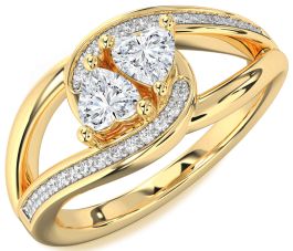 This elegant Promise ring features two heart-shaped center stones nestled closely in a romantic embrace, symbolizing unity and affection. They are surrounded by pavé-set accents that curve along a split shank, adding brilliance and flow to the design. The openwork band lends a modern twist to the classic heart motif, creating a balance of charm, sparkle, and timeless sophistication.