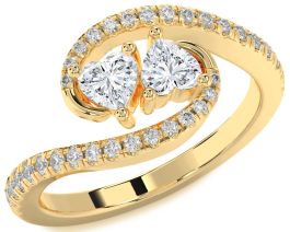 This romantic promise ring features two heart-shaped stones set side by side, symbolizing unity and everlasting love. A graceful swirl of pavé-set accents wraps around the center, adding brilliant sparkle and elegance. The polished band flows seamlessly into the design, creating a timeless piece that captures the beauty of connection and heartfelt devotion.