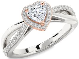 Diamond Platinum & Rose Gold Heart Halo Engagement Ring