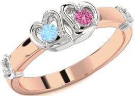 Diamond Platinum & Rose Gold Heart Two Stone Promise Ring