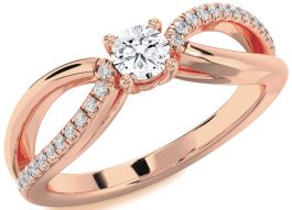 This Promise ring features a graceful bypass design where two polished gold arms sweep upward to embrace a radiant round-cut center stone. The arms are accented with a line of sparkling pavé-set diamonds, adding texture and brilliance to the open band. Symbolizing unity and everlasting love, this Promise ring is a stunning token of affection and elegant commitment.
