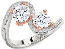 Diamond Platinum & Rose Gold Round Two Stone Pave Ring
